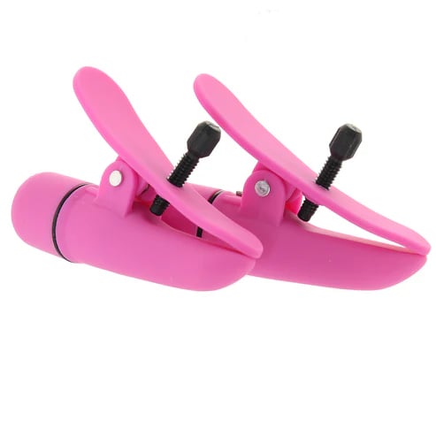 Gripping the peaks of your or your partner's nipples, these sweet little pinchers snugly position a powerful vibrator under each as the pressure-receptive clamp portion arouses and teases sensitive skin. The clamps are not adjustable, but they're relatively gentle and shaped for comfortable wear.